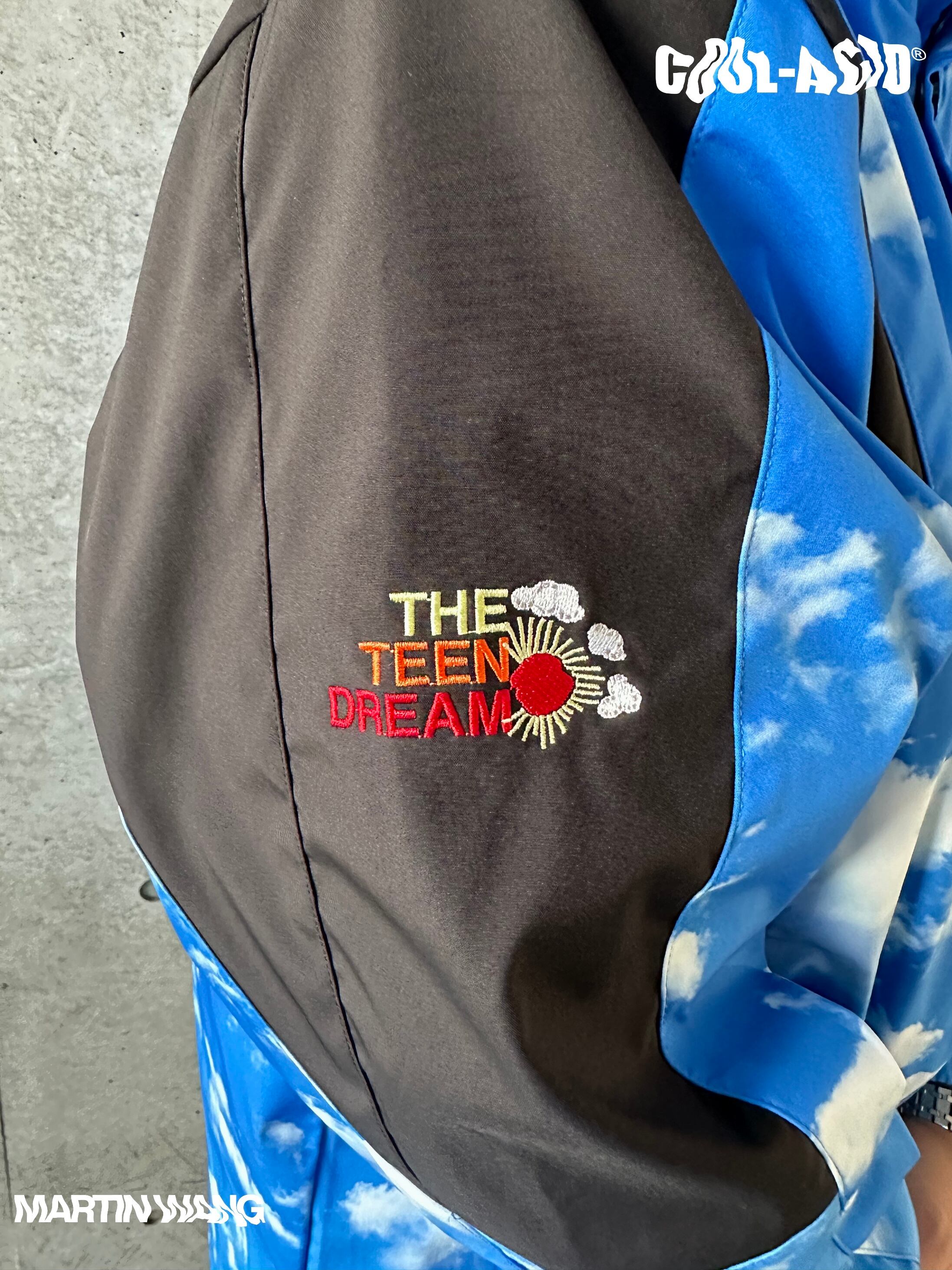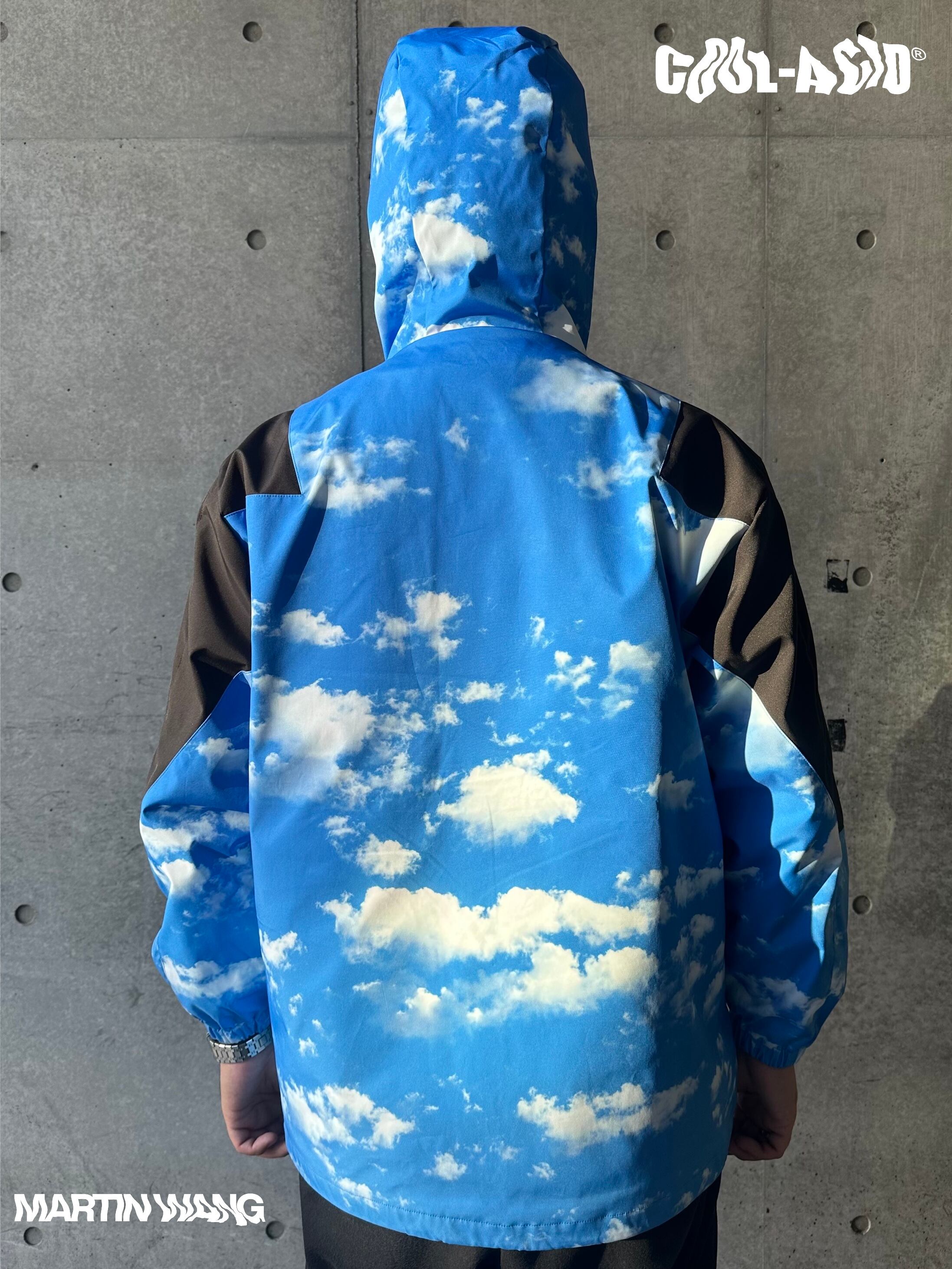 デジタルプリント+レーザーカットで青空と雲のグラフィックを鮮明に表現。
